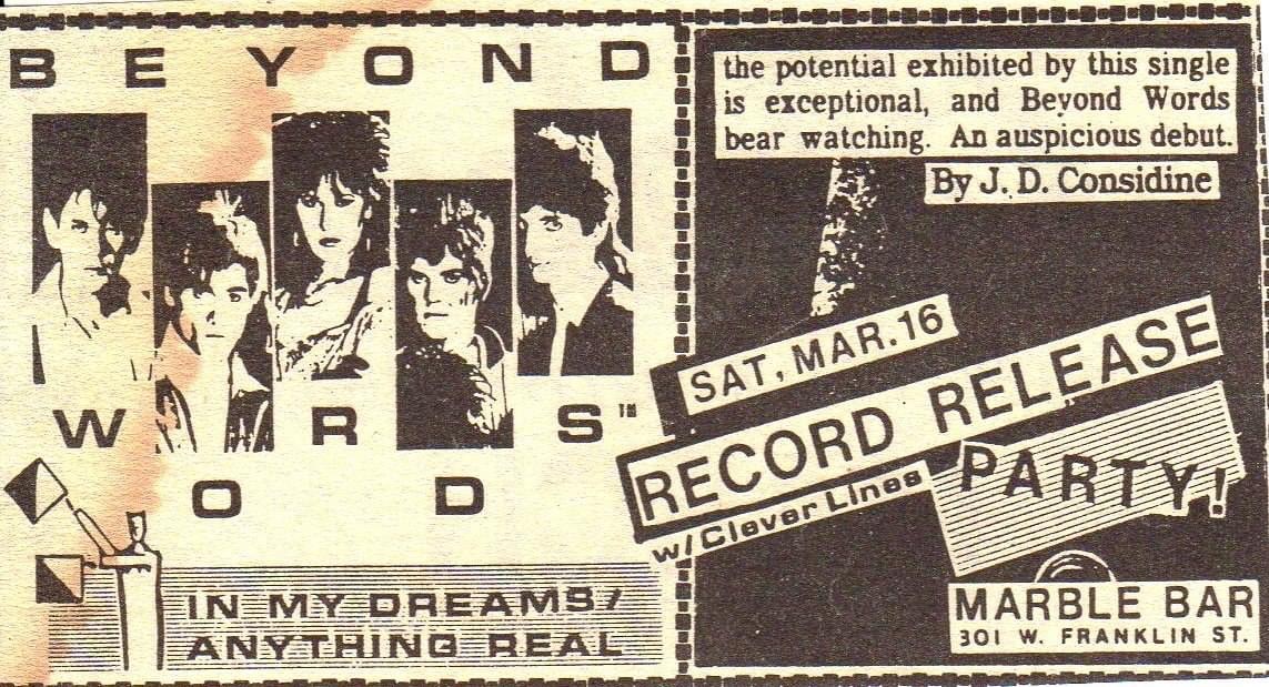We continue to seek out information and memorabilia related to artists who may have been missed in the book, as well as additional information about artists who were included in the book. We welcome any additional information you would like to share about your bands or any other local artists. Always looking for records-tapes-CD's, photos, band cards, handbills, posters... anything related to local music.