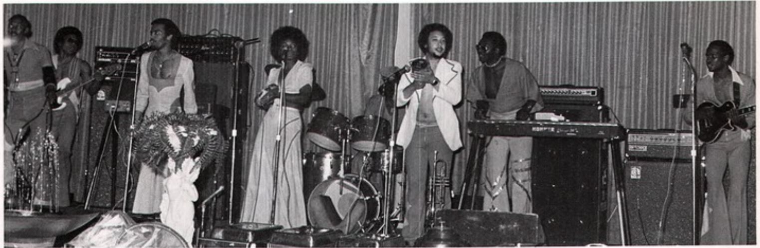 Photo of band taken at a Baltimore Polytechnic Institute dance in 1976