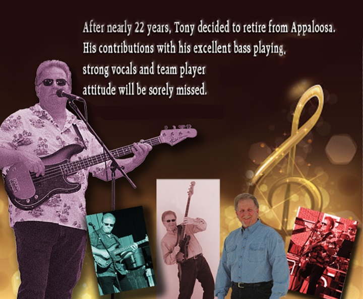 Tony Cesenaro retired from Appaloosa in 2012 - just shy of 22 years with the group. He was replaced with Craig McFarlane until 2015, then Joel Brengle was bassist until their last gig on November 12, 2021.