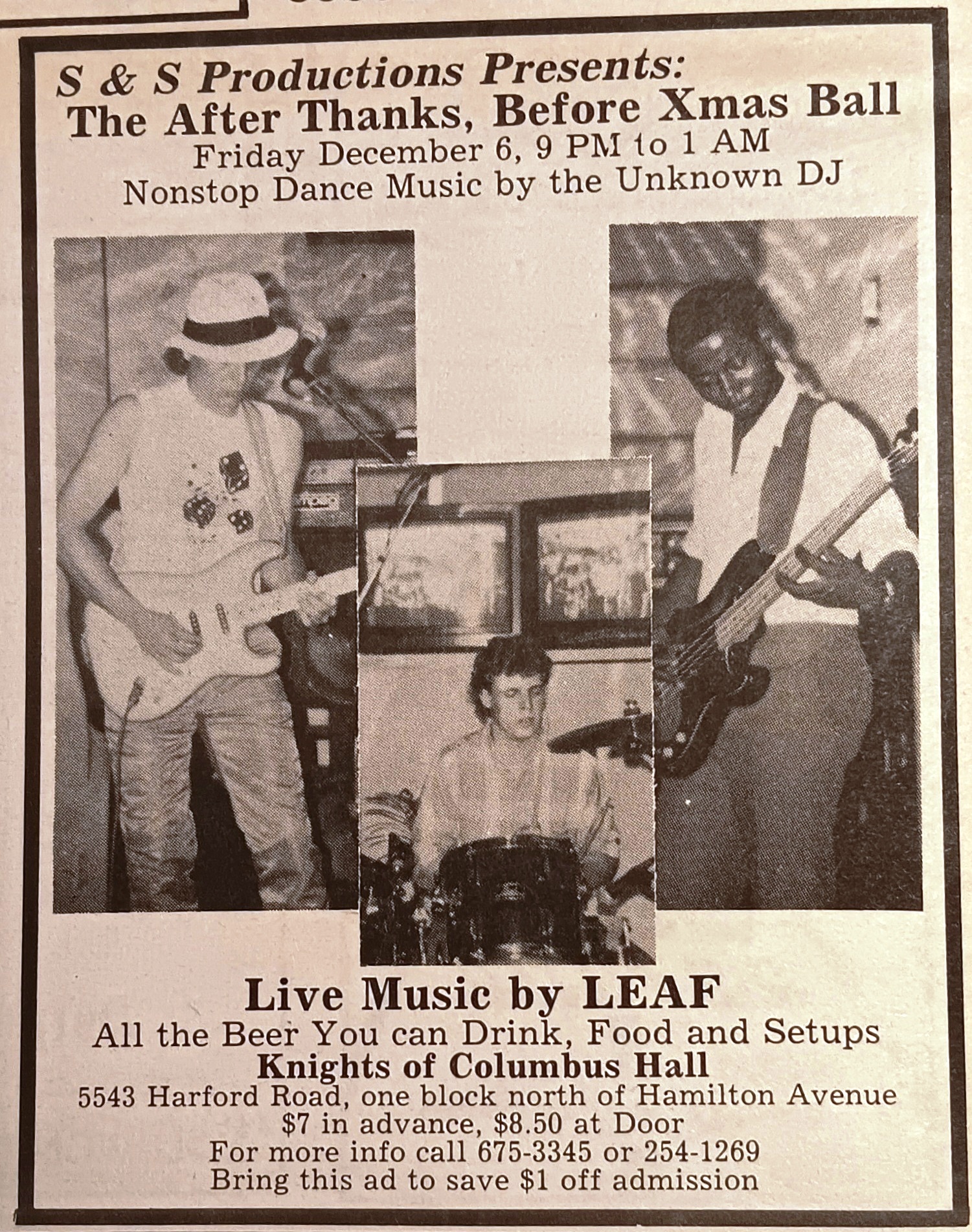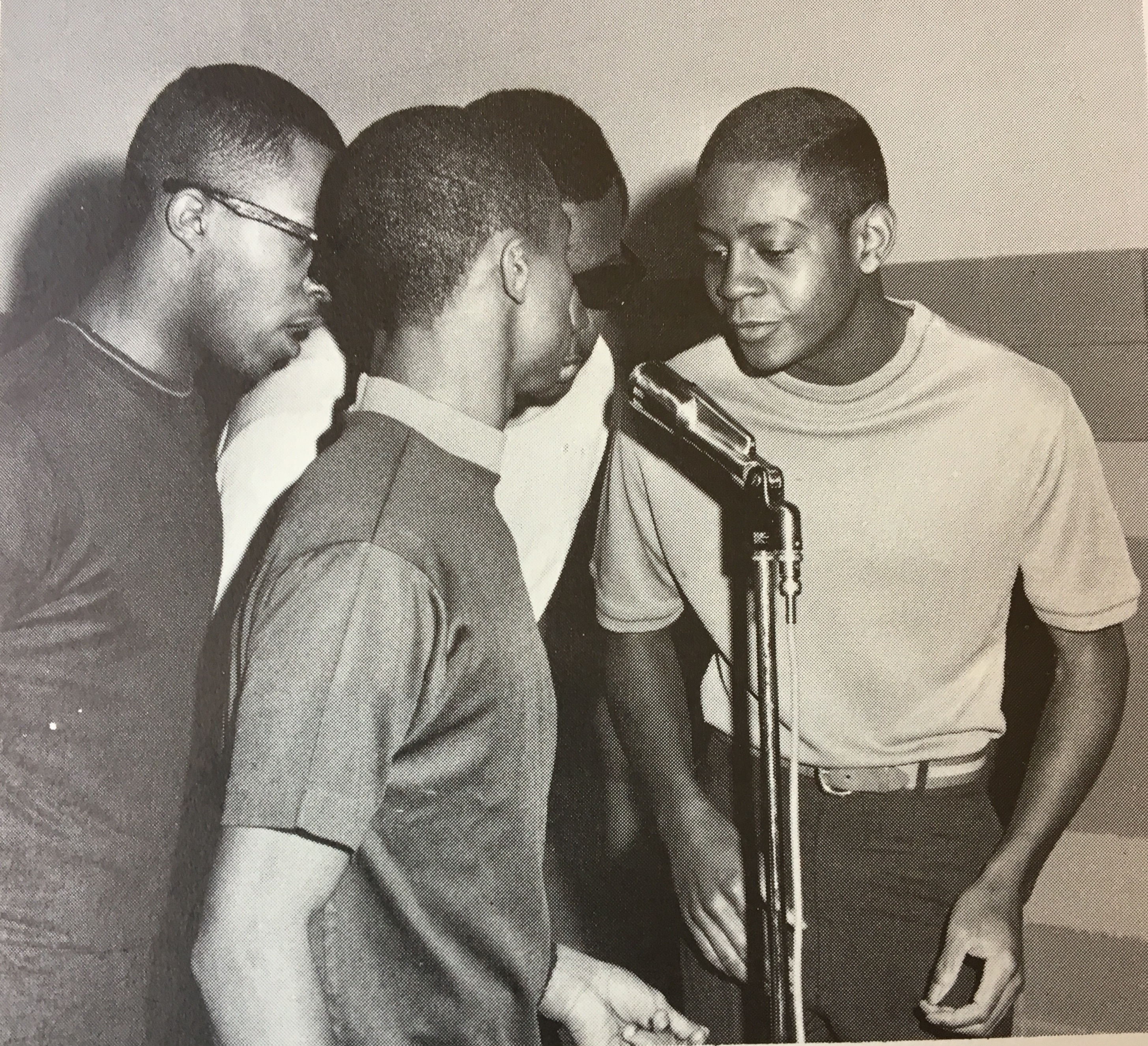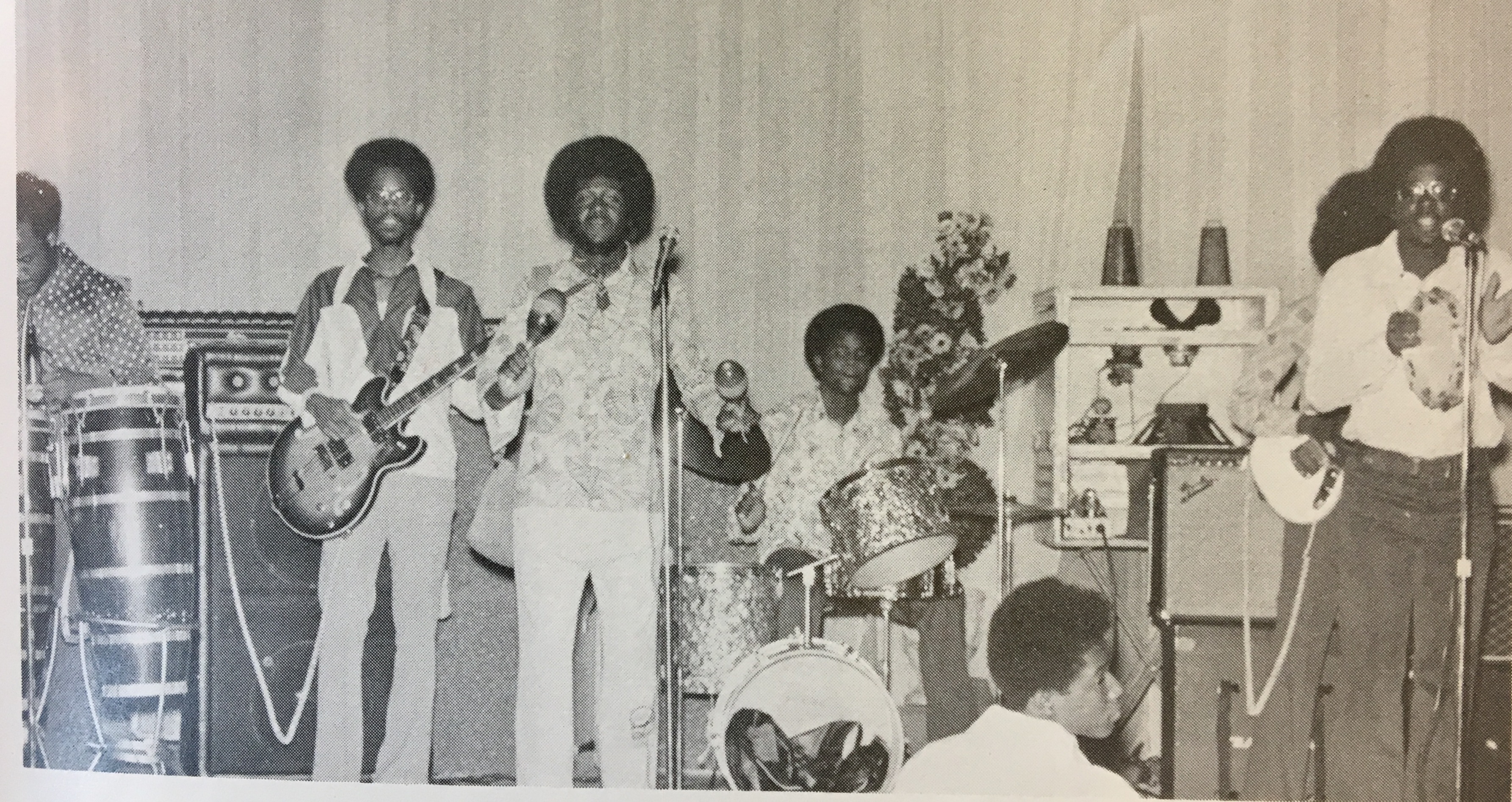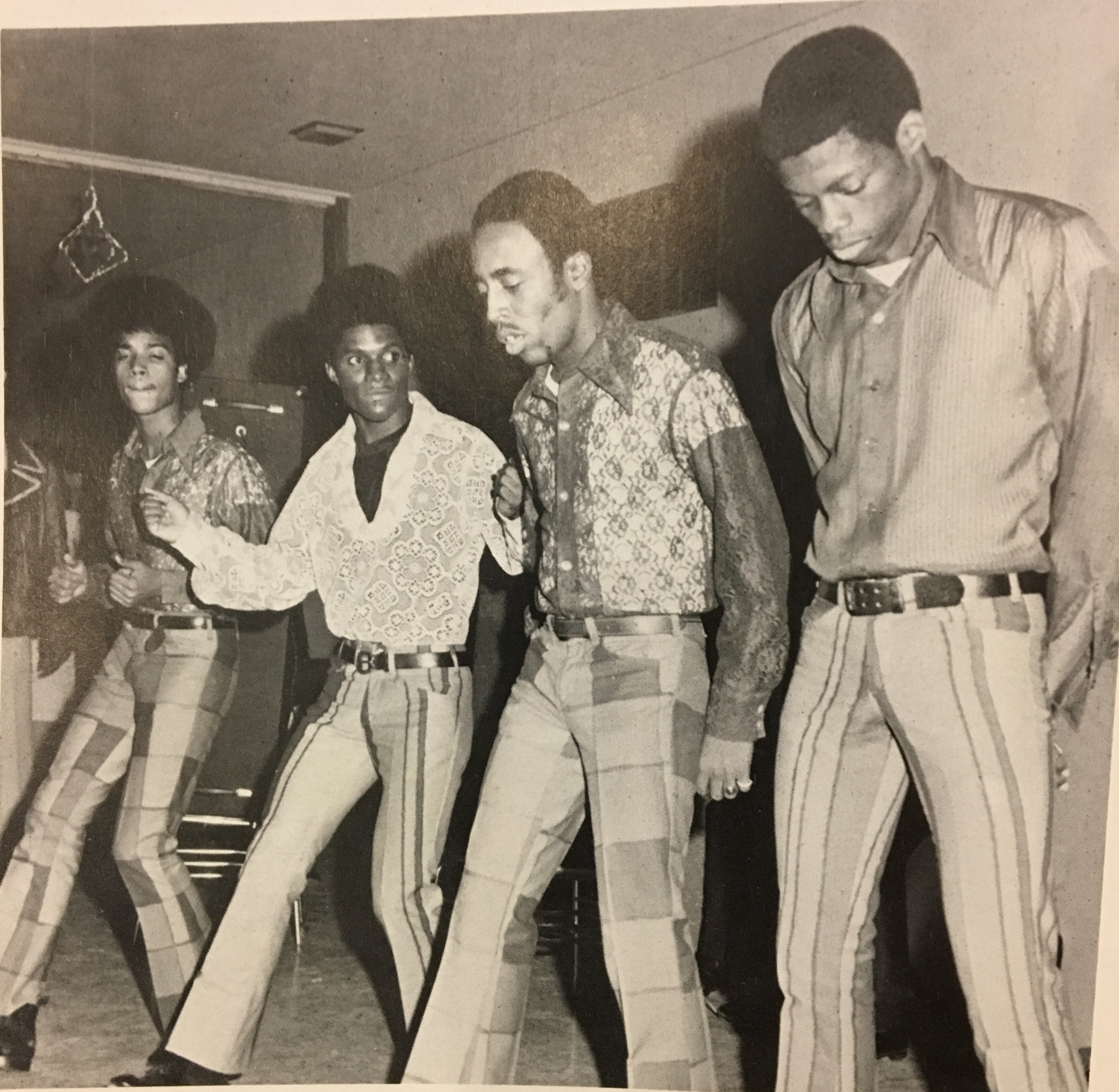 Photo of band taken at a Baltimore Polytechnic Institute dance in 1976