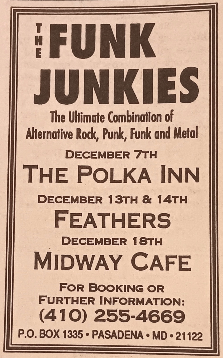 Being a small business, I was able to charge (an inexpensive) flat commission rate... The bands liked it, we all made out. I booked lots of weddings and hall parties, Millersville Inn, Brass Rail Pub, Purple Moose Saloon, Poncabird Pub, Feathers at the Red Rooster, Midway Cafe, to name a few. Among my personal favorite groups were Rumors (of course), Hanzoff, Archer, Signals, Laughing Colors, Layers, Detour. I closed the agency in 1994."