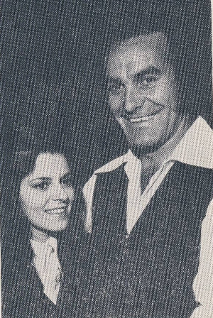 Announcer/Promoter Roz Ford (right) with record promotional guy - Holding a copy of the latest release by the Matys Brothers on Sunnyside label circa late '50s